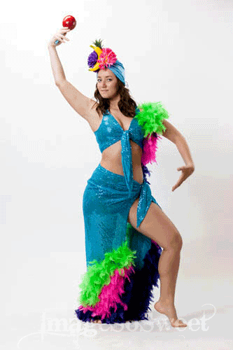 Includes: Top, skirt, fruit head piece